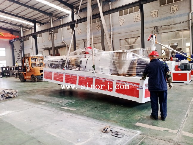大理石板設(shè)備墻板設(shè)備裝柜進(jìn)行中,扣板生產(chǎn)線試機(jī)進(jìn)行時(shí)